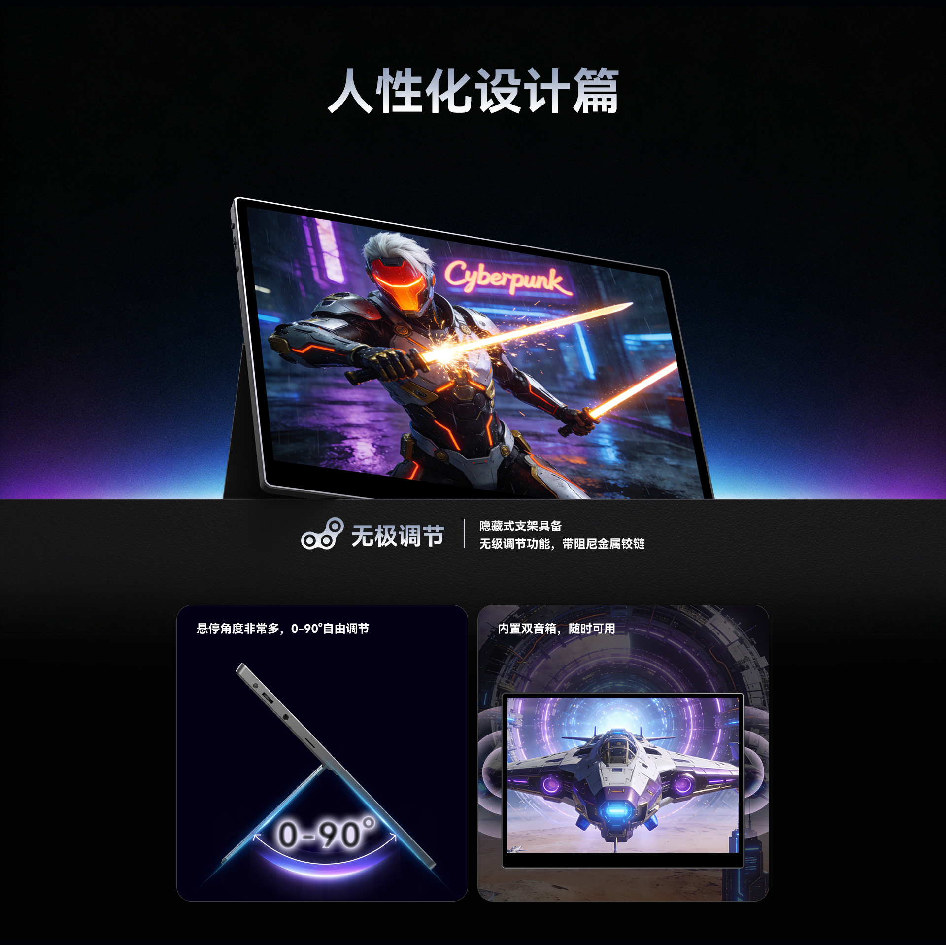 隐藏式支架,最大可支持90度开合