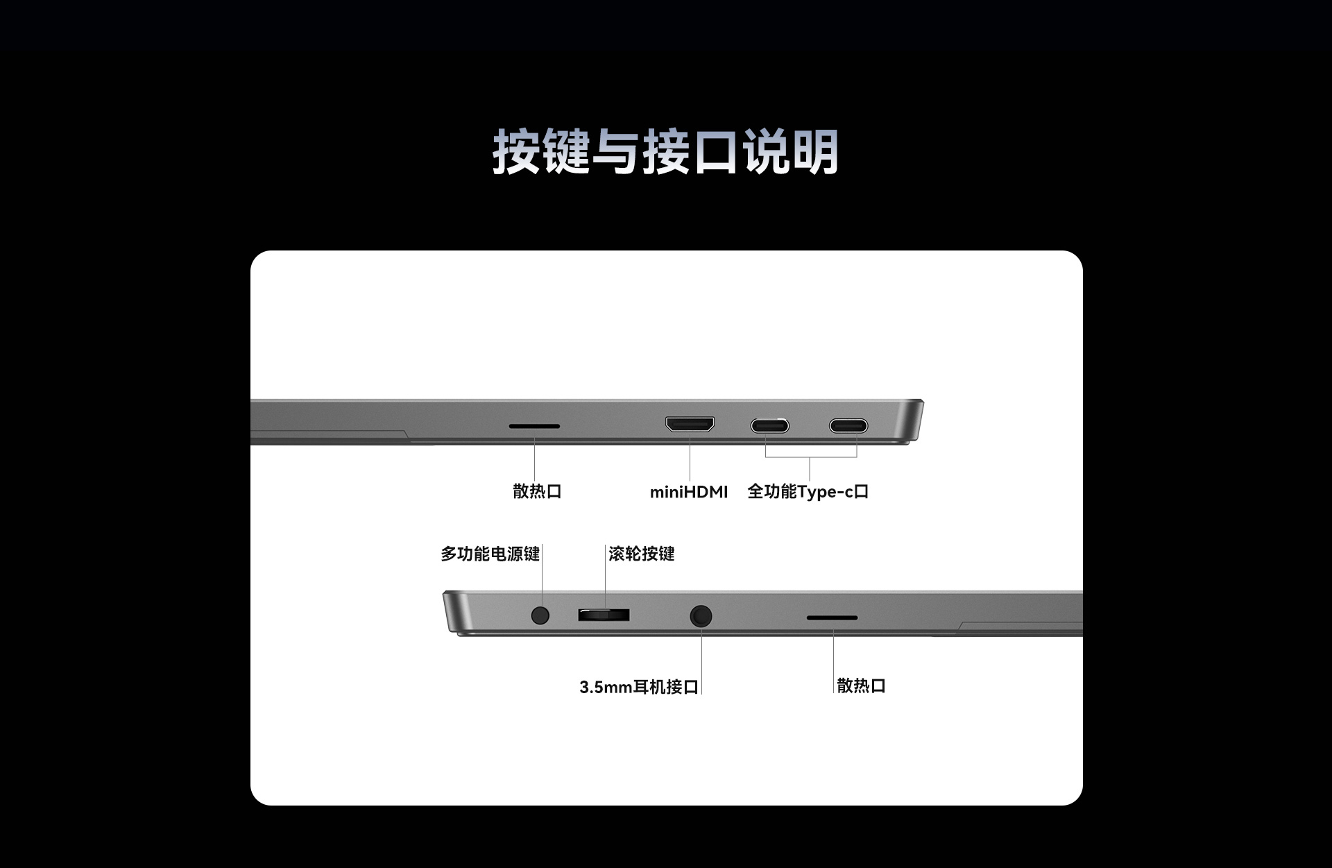 type-c全功能口*2,miniHDMI*1,3.5mm耳机孔